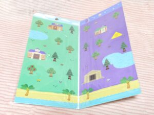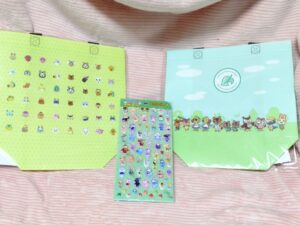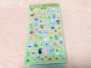 中を開くと台紙になっていて、こちらにキャラシールを貼ったり、はがしたりしてあそぶことができます。最近流行りのシール集めにハマってしまったので、このままコレクションにして飾ろうか、悩み中です…どうぶつの森のシール帳が出ないかなぁ~と密かに思っています‼