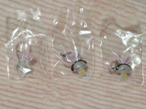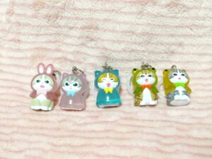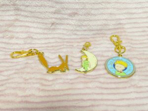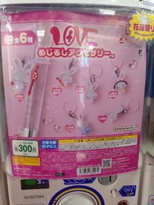 こちらは懐かしい大塚愛さんが手がけた “LOVEちゃん” というキャラクター。自分が高校生時代に大好きで、マスコットやぬいぐるみをゲームセンターでよく取っていました。まさかめじるしアクセサリーになって再会できるなんて!!在庫のみで3個だけGETできましたが、かぶってしまいました。