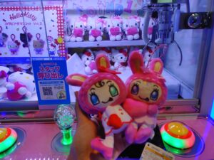 ラウンドワンで見つけたプライズ品。キティちゃんとのコラボぬいぐるみ。
