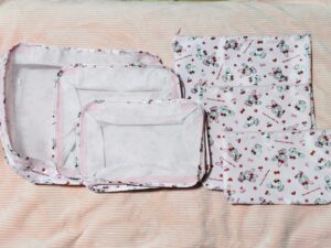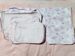 ポーチが大・中・小、計6個入っていました。トラベルポーチになるようで、取っ手もついており、日常使いから旅行時まで幅広く使えそうです。