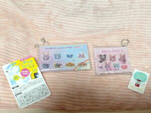 そして先日、《総柄クリアフラットポーチ》の新キャラクターが入荷&再入荷したとのことで4回目の来店。笑 無事に ”デビリーちゃん” ”クランベリエちゃん” ”ミミリーちゃん” を購入。今まで見たことがなかった ”ベリエちゃん” ”ブルーベリエちゃん” のステッカーも購入。そしてランダム商品をいざ開封!