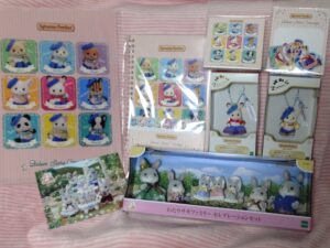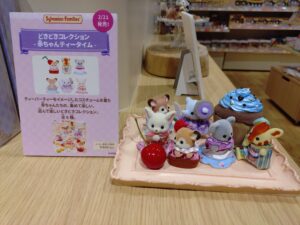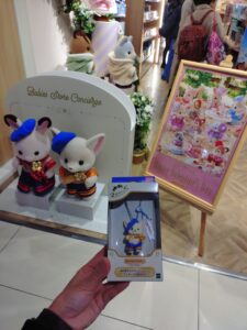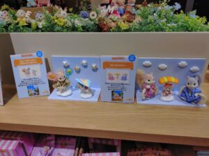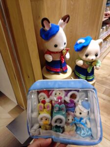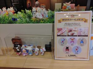 家からお気に入りのお人形さんをポーチに入れて一緒に買いに来ました。お店に入ってすぐの場所にステーショナリーを発見‼開店してからすぐの時間帯だったのでたくさん在庫がありました。特に購入制限もなく、すべての商品をGetできました~!ひと安心。そして、赤ちゃんコンシェルジュのキーチェーンも発見‼おひとり様1点限りでしたが、こちらも購入。そして同じく本日発売の”わたウサギファミリー”。こちらはネットで注文していたのですが、シルバニアの店舗で買うと限定ポストカードがもらえるとのことで急遽買うことに‼その他にも”森のキッチン 赤ちゃんと一緒セット”やこれから発売を控えているお人形さんやランダム商品も展示されていてわくわくが止まりませんでした(笑)