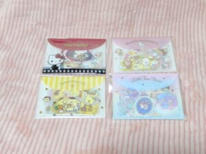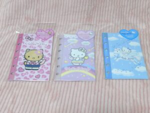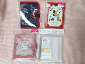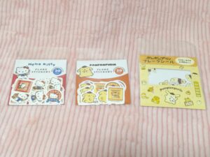 後日別の店舗で追加購入!こんなにたくさん種類があるのですね。(購入しなかったのですが、クロミちゃんやマイメロちゃんもありました。)キティちゃんとポムポムプリンのメモもかわいいいです♡