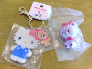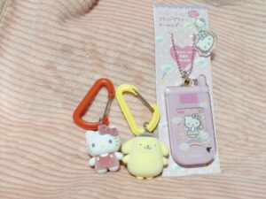 《スライドガラケーキーホルダー》こちらは3種類ほどありましたが、ピンクをチョイス。ガラケー、懐かしすぎる‼笑 先ほどのガチャガチャは大好きな ”キティちゃん” と ”ポムポムプリン” でした‼続いて別の雑貨屋さんで ”キティちゃん&タイニーチャム” のキーホルダーを購入。