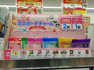対象のお菓子を買うと《スライドポーチ》がもらえるキャンペーン。こちらはなかなか全部揃っているお店が少なく、ようやくコンプできそうなお店を見つけることができました‼