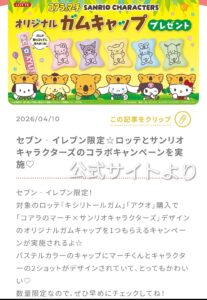 そしてもうひとつのキャンペーン。対象のガムを3つ買うとコアラのマーチとコラボした ”ガムキャップ” がもらえるのです。こちらも数件のセブンイレブンを回ってようやくコンプ‼