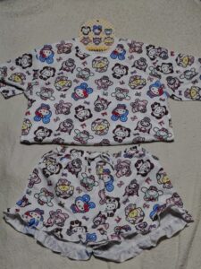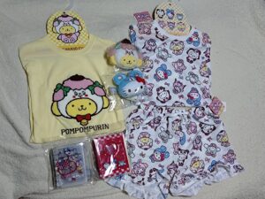 お昼前くらいについたのですが、ドンキは商品がズラリと並んでいてなかなか自力で見つけられず…💦お店の人に聞いたところ、売り場まで案内してくれました!本当に品揃えが豊富でびっくりですね‼そして念願の 《シール帳》2種類と《フェイスポーチ》の ”キティちゃん” と ”ポムポムプリン” をGet!(フェイスポーチはどれもかわいく本当は全部欲しかった…しかしお値段が…)そして、買う予定のなかったTシャツがとてもかわいく、衝動買い。笑 《フェイスサガラ刺しゅうTシャツ》の ”ポムポムプリン” そして 《総柄半袖Tシャツ》。総柄はこの年になってなかなか選ばないのですが、あまりのかわいさについ…このお店では《総柄ショートパンツ》のサイズがなかったため、もう一店舗はしごすることに‼